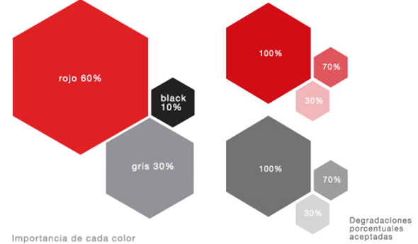 - Sólo se deben utilizar las degradaciones porcentuales definidas de los colores de la paleta.