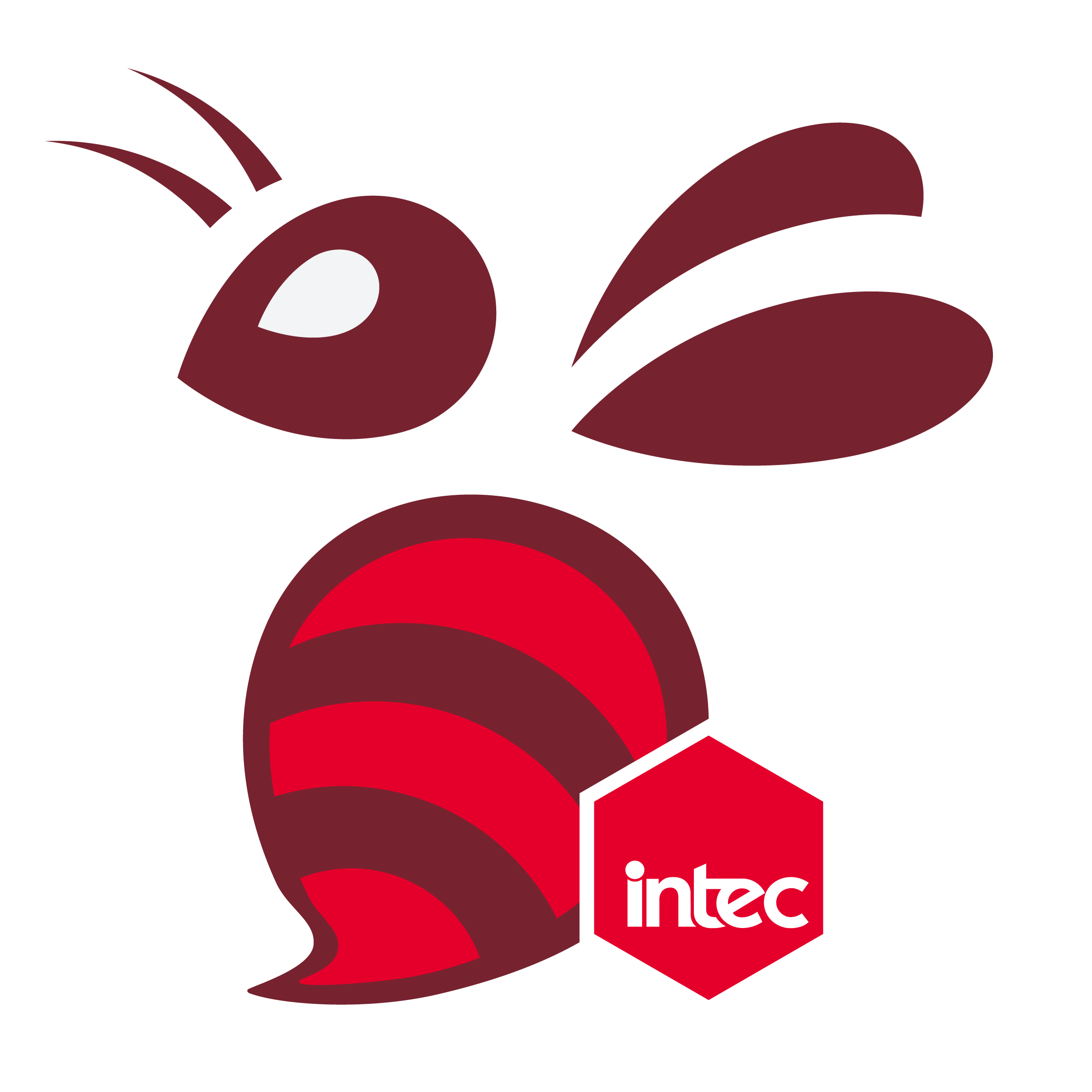 La cabeza, alas y rayas de la abeja son color Vino INTEC, mientras su cuerpo es Rojo INTEC. La abeja, salvo sus antenas, lleva siempre un contorno blanco. Para usos sobre fondos oscuros, las antenitas van de color blanco.